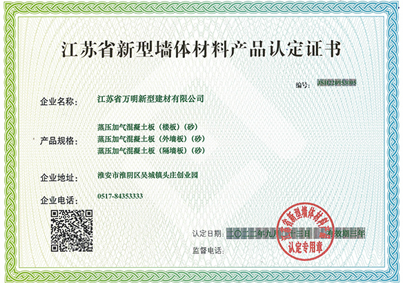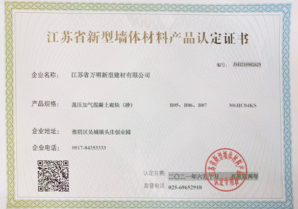 江蘇省萬明新型建材有限公司是一家多元化經(jīng)營企業(yè),專業(yè)生產(chǎn)新型墻體材料、蒸壓砂加氣砌塊、蒸壓灰加氣砌塊、混凝土砌塊銷售。本公司所生產(chǎn)的新型墻體材料、蒸壓砂加氣砌塊、蒸壓灰加氣酥塊、混凝土砌塊填補了江蘇省企業(yè)市場空白,產(chǎn)品質(zhì)量符合標準,并被江蘇省墻體材料改革辦公室認定為綠色新型墻體材料,是江蘇具活力的企業(yè)之一。